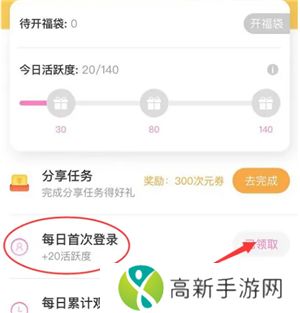 2、在每日任务界面,点击每日登录后面的【领取】按钮。