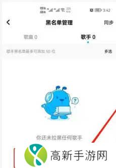 在弹出“黑名单管理”界面,选择下方“添加想屏蔽的歌手”就可以了。