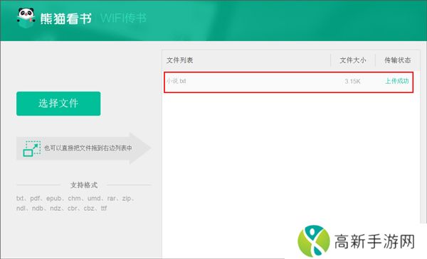 3、用电脑浏览器打开指定地址,可以添加文件上传或将书籍拖动至传输列表。
