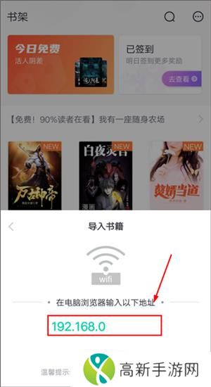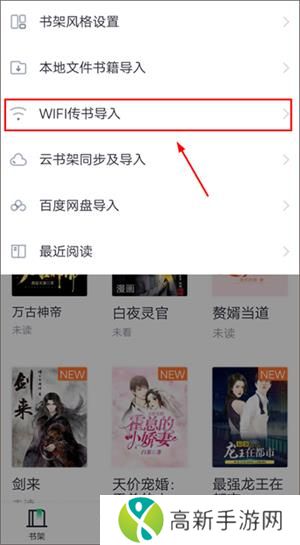 2、在弹出菜单栏内点击[WiFi传书],在页面下方会出现一个地址。