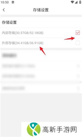 3、进入存储设置界面,可按需更换为【内部存储】或者【外部存储】。
