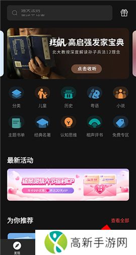 喜马拉雅听书免费版是一款非常知名的线上听书看书软件,这里有海量的有声读物、名人名著、世界经典、网文小说等特色内容当你去选择,支持自主调节阅览模式,切合不同用户的听书喜好,便捷操作让你听书更方便,资源超全而且没有广告和付费内容,喜欢的小伙伴快来下载喜马拉雅听书免费版试试吧。