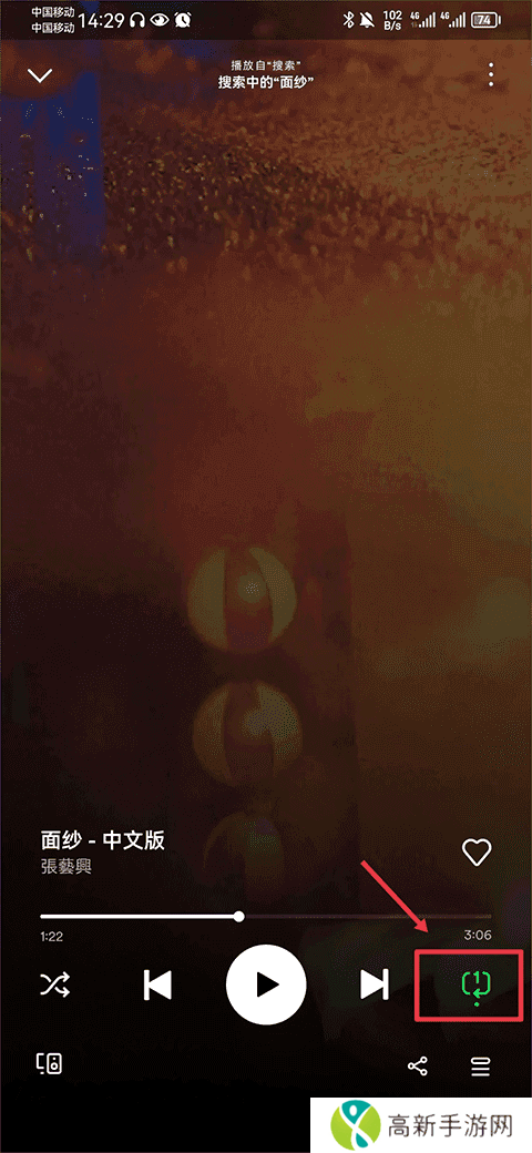 1、在歌曲播放界面中点击循环按钮,直到按钮上方显示数字1时,即代表已设置为单曲循环播放模式
