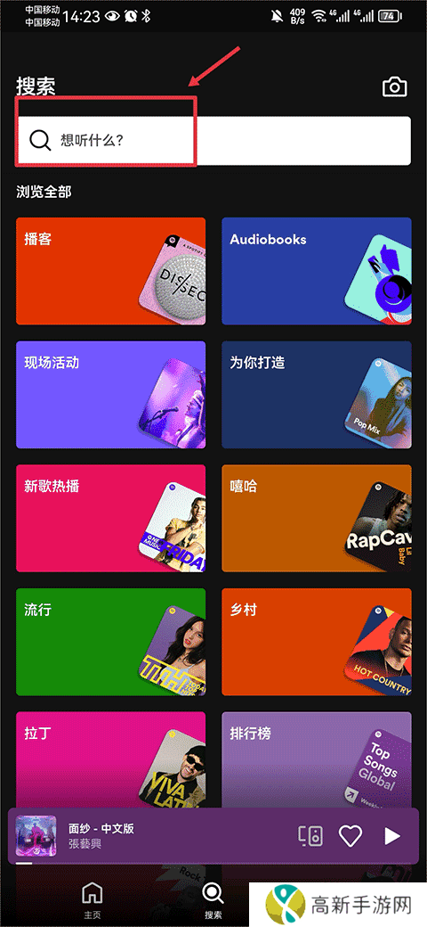 1、打开app后,在搜索页面中输入歌曲名字或者艺人名字