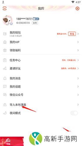 1、打开软件,点击底端的“我的”选项,然后点击“导入本地漫画”选项。