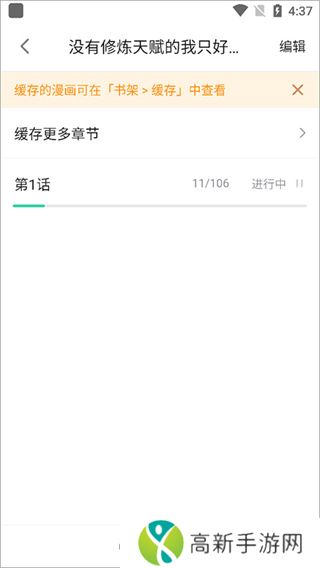 缓存结束后就可以在书架页面中点击缓存进行查看了。