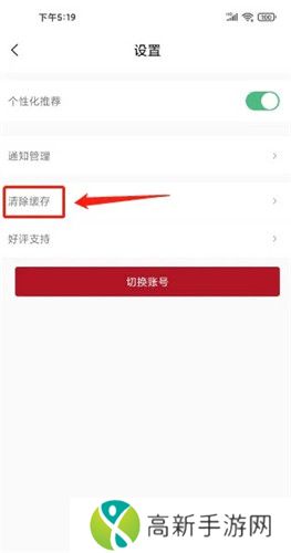 2、进入设置,点击【清除缓存】。