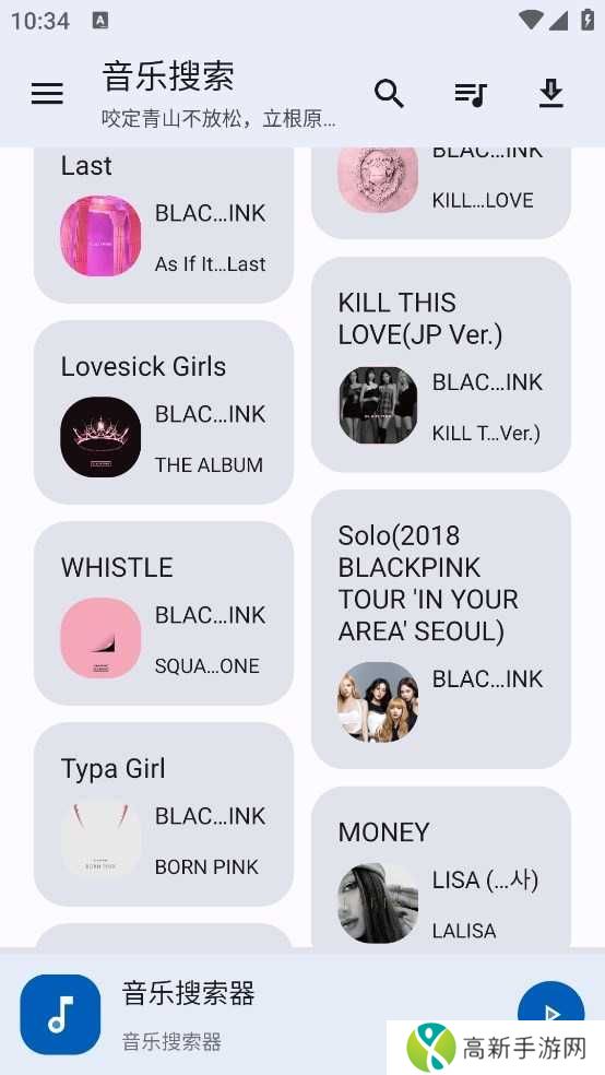 2、可以点击搜索栏搜索喜欢的歌手或者歌曲,比如Blackpink