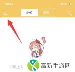 1、首先打开顶点小说的书架页面,在左上角点击三横杆
