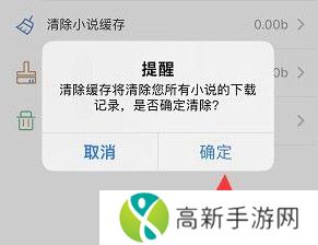 3、点击清除小说缓存后,在弹出页面里点击确定