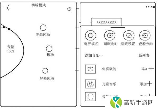 除了拥有音乐特效外,汽水音乐还有睡眠模式、隐藏设置、查看专辑等功能,满足了用户的使用体验。另外,用户也可以将当前播放的音乐添加至不同的歌单,通过草图可以看到,歌单有用户喜欢的曲库,也有儿童音乐,还有不同音乐人的歌单。