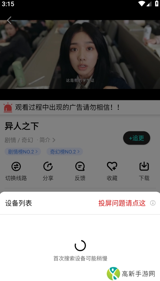如果遇到电视机一直在加载的问题,请点击本应用中的“切换线路按钮”,切换播放源后重试即可