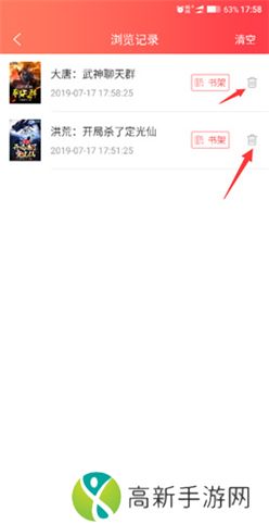 3、而在浏览记录,可以直接点*桶,也可以直接删除浏览过的小说。