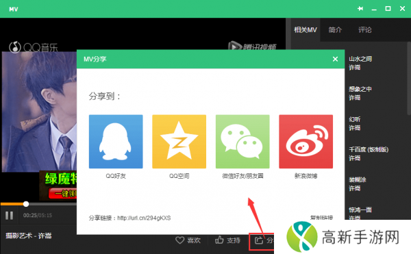 可以点歌给QQ/微信好友,述说你的音乐故事,可以将音乐分享到朋友圈、微博、空间,表达你的音乐心情,还可以聆听好友分享,邂逅音乐惊喜。