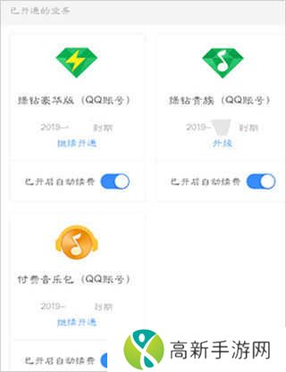 4、可以看到目前所有的自动续费服务开关按钮都是打开状态,我们要一个个的点击(关闭)这些服务即可。