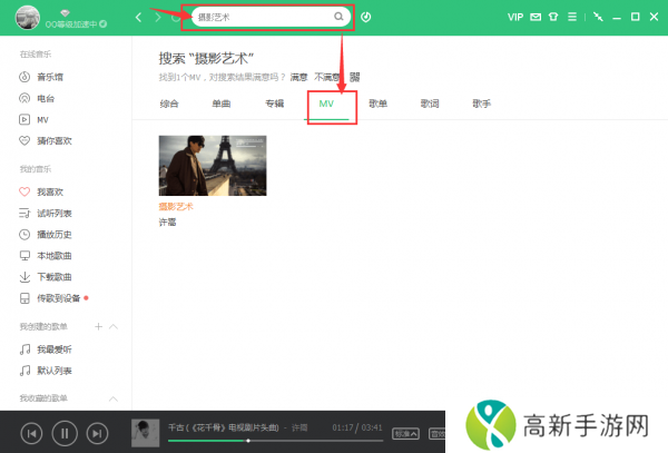 2、点击【MV】,点击你要观看的MV,进入播放页面,