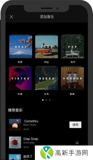 3、进入到卡点曲库之中进行卡点歌曲的下载,接着点击选择右侧的“使用”按钮,将其应用到当前素材之上。