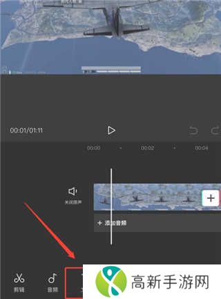 2、导入完成之后即可进入到“视频编辑”界面,在该界面我们就可以在底端点击选择“音频”功能,在下方列表中点击“音乐”按钮,找到自己感兴趣的在线卡点歌曲。