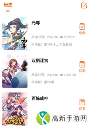 4、想要定位之前看漫画的位置,就在历史界面点击续看就可以了哦!