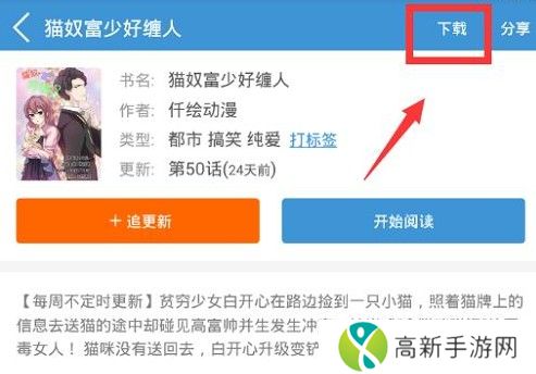 2、选择你喜欢的漫画进入漫画详情界面右上角:下载。