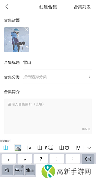 然后在打开的新页面中将相关参数填写完整创建一个合集