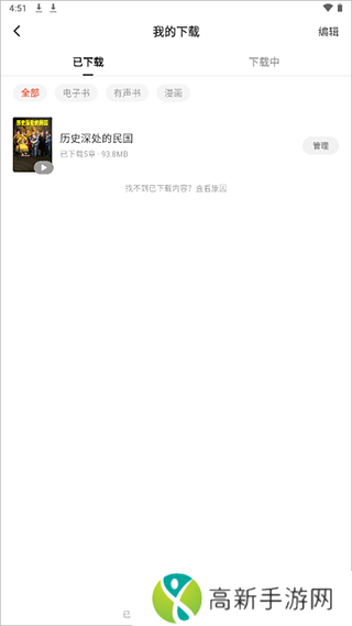 怎么下载资源目前应用中的视频资源无法下载,但是听书资源和小说资源已开放了下载渠道,用户可以进入这些页面中选择需要下载的资源点击