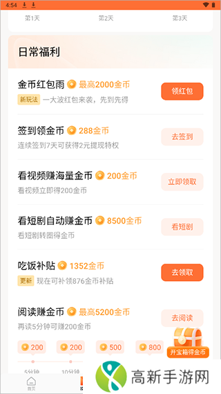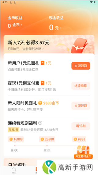 4、每天看剧达到一定时间可以获得金币,累积到一定数额就能体现,新人朋友还有七天签到福利