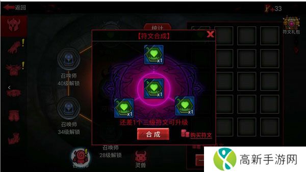 符文系统是灵活多变的,前期资源不够的时候可以先上点低等级符文带着,千万别把符文槽空着,这样很亏,后面慢慢符文多了后就可以取下来合成更高级的,三个同样等级同属性的符文可以免费合成更高一级的符文,合成不需要手续费且百分百成功率!