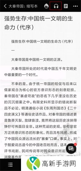 2、轻轻触碰手机屏幕,将会弹出以下页面,点击右上角的戴耳机按钮,就可以进行听书了;