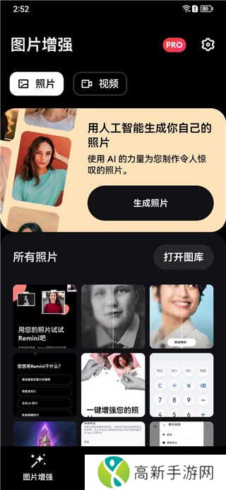 1、在本站下载安装好Remini照片修复软件,打开进入授权图库,并选择你需要修复的照片;