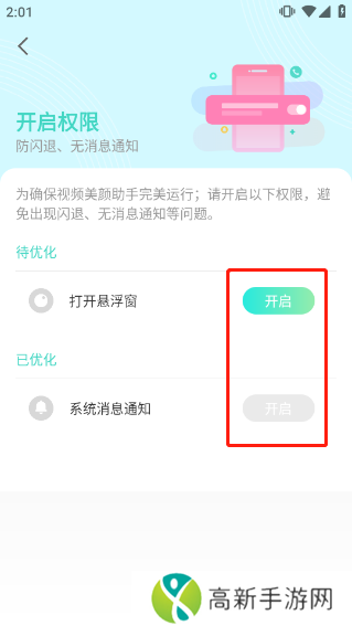 2、我们需要开启悬浮窗和系统消息提醒,点击“开启”后会自动跳转至相应的设置界面