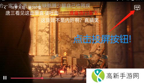 2、在视频播放界面,点击右上角【投屏】按钮,在选项页面中点击【投屏】按钮;