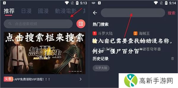 2.点击搜索栏,输入你需要查找的动漫名称,点击搜索