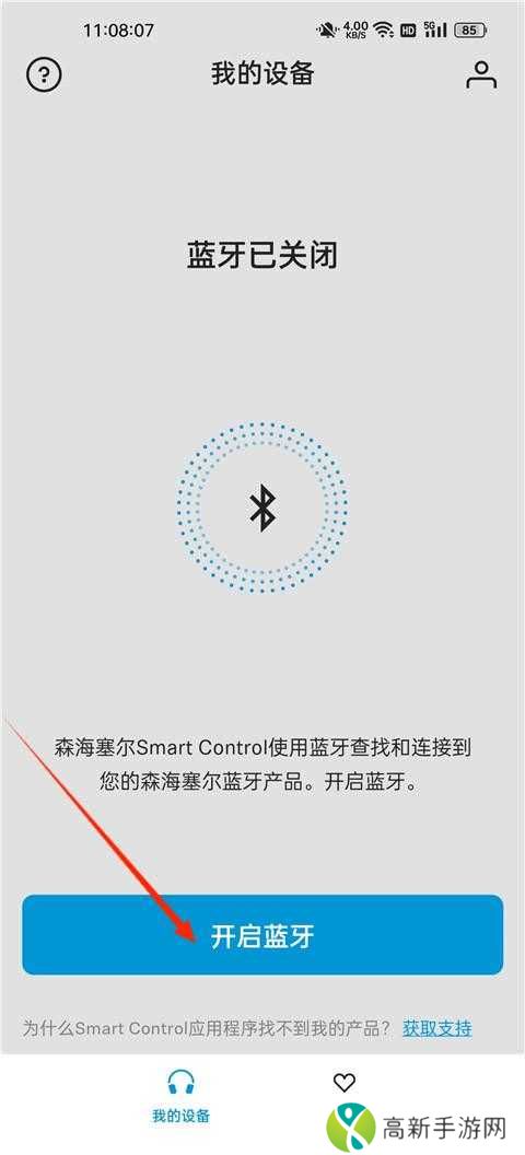 1、进到应用后,先点击开启蓝牙,要注意的是耳机也需要开启蓝牙连接功能,这样才能相互配对;
