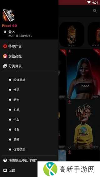 打开侧边栏可以看到分类目录,有空间、超级英雄、动物、幻想、汽车、抽象等等。