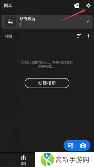 2、进入到LR首页里面后,在图库的最右上角有设置图标。