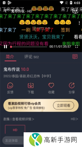 5.在观看的过程中我们可以打开弹幕、下载、收藏、分享等。