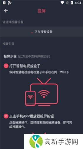 6.同时支持投屏功能,打开后软件会自动搜索投屏的设备,绑定投屏设备后就可以享受大屏高清的画面了。