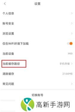 2、在设置页面中点击当前缓存路径,可以看到存储在哪里了;