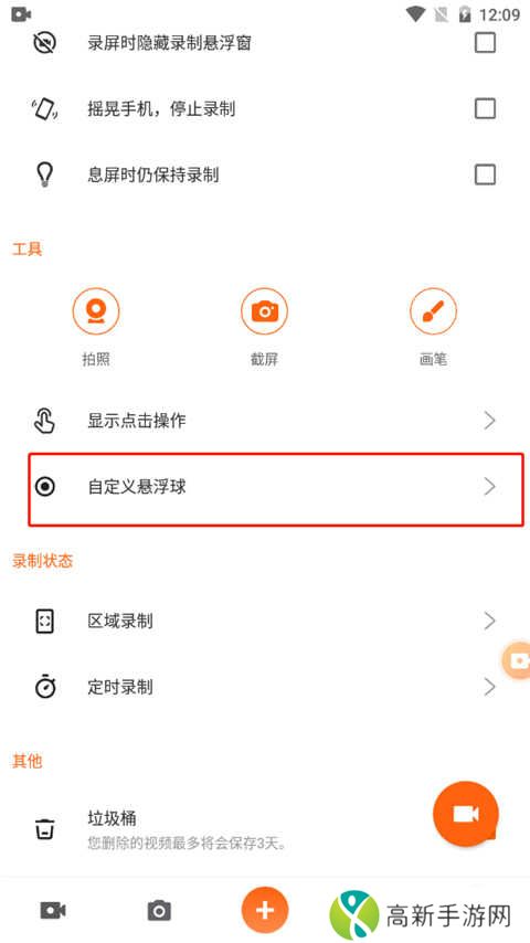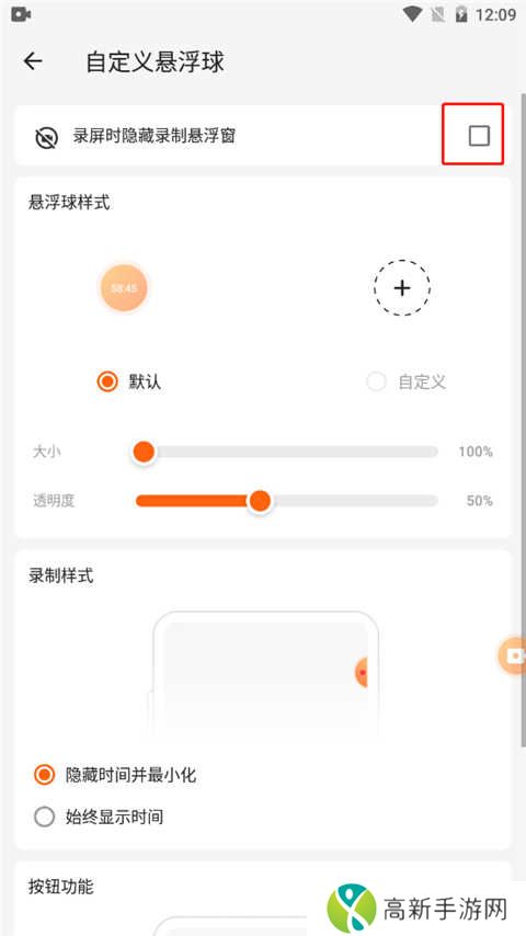 2、然后点击录屏时隐藏录制悬浮窗即可。