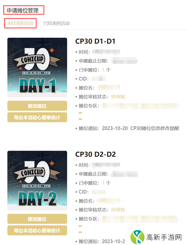 到这里,如果您是社团的创建者,即可到【活动管理】-【可申摊活动】中勾选本子进行参展。