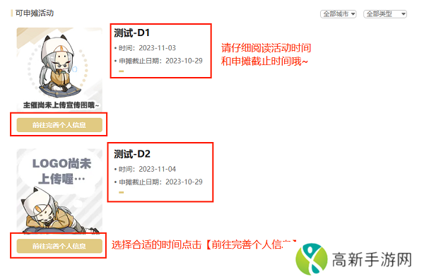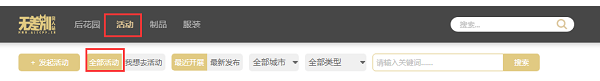 可以根据【城市】和【活动类型】来更好的查找您想找到的活动哦~