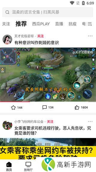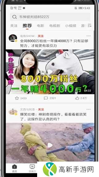 2、首页页面,可以看到很多创作领域的优质视频,游戏直播、新闻资讯等,视频内容很丰富;