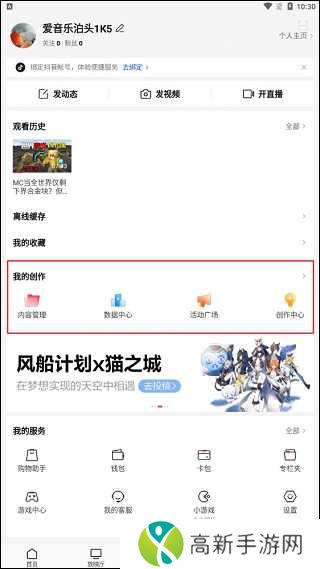 3、进到用户中心以后,挑选在其中的“我的创作”,如下图所示。