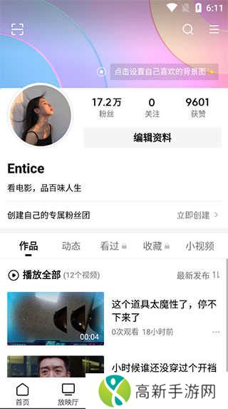 6、我的页面,查看账号信息、个人作品、还可以创建专属粉丝团。