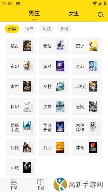 3、网络书城、男生小说、女生小说、热门榜单,分类应有尽有。