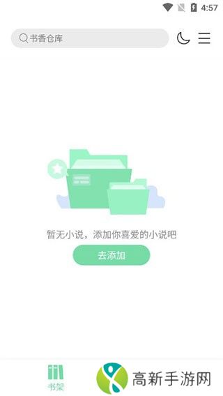书香仓库小说app怎么用1、首次进入书香仓库app,书架上还没有小说,点击前往添加;