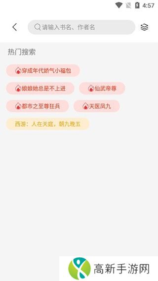 2、进入搜索界面,可在输入框中输入小说的关键词进行查找;