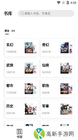 3、也可在书库界面,根据小说分类进行选择;