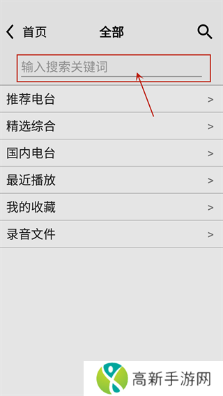 2、还可以自行搜索各种不同的电台,只需在搜索栏输入关键字即可。